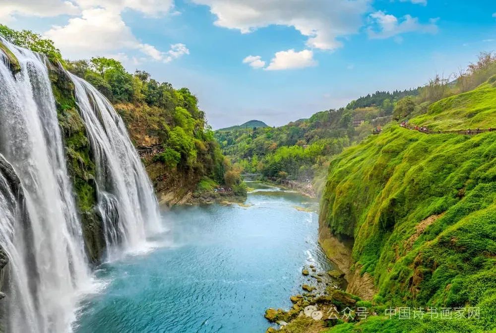 1638年(明崇祯十一年)4月23日,明代地理学家、旅行家、散文家徐霞客经黄果树瀑布入滇,对黄果树瀑布进行了考察和记录。其后历代文人墨客作诗撰文赞颂黄果树瀑布。二十世纪80年代后,一大批中外名人到黄果树游览、题词。原全国人大常委会副委员长廖汉生题:“黄果树黄,白水河白,黄白相间,天下一绝”;国画家吴作人题:“奇境”;艺术家刘海粟题:“天下奇观”、“黄果树宾馆”、“水帘洞”。诗人艾青:“黄果树是很美的,大家都来为黄果树写诗吧!”