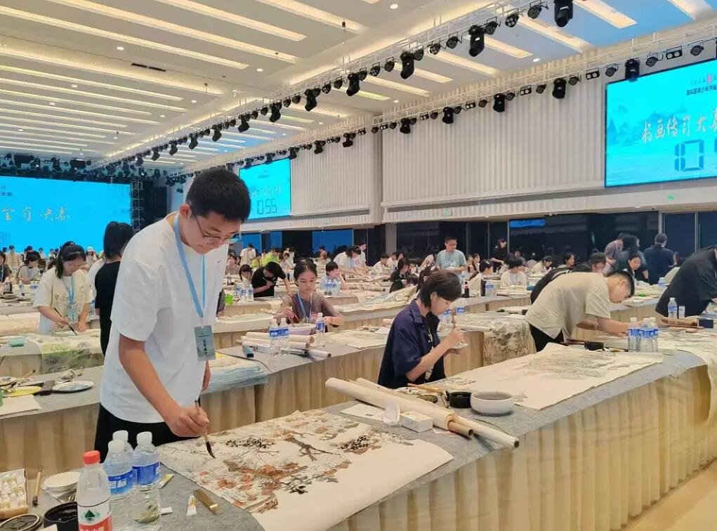 上午8点30分,比赛现场翰墨飘香,选手们熟练地运用笔、墨、纸、颜料等工具展开创作。中国书法参赛选手根据题目,自由选择擅长的书法字体,铺开画纸进行精心布局,大家笔法成熟,稳定发挥,一撇一捺间尽显汉字之美;中国画参赛选手则围绕主题进行巧妙构思,以细腻的线条勾勒出绚丽多彩的画面。?